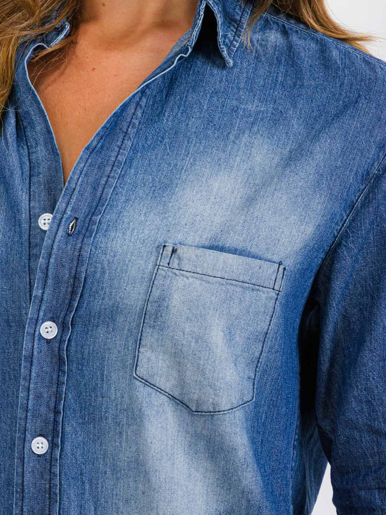 WOMEN'S LONG SLEEVE BUTTON UP POCKETS DENIM WASHED MINI DRESS