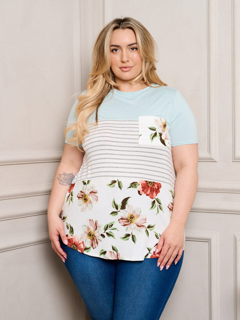 PLUS SIZE SHORT SLEEVE COLORBLOCK FRONT POCKET TOP