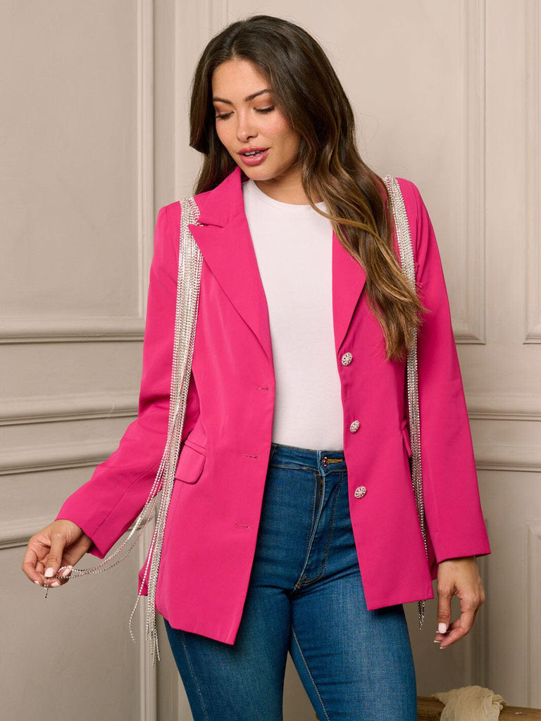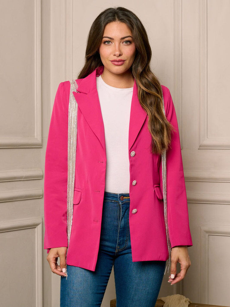 WOMEN'S LONG SLEEVE BUTTON CLOSURE STUDS DETAILED BLAZER