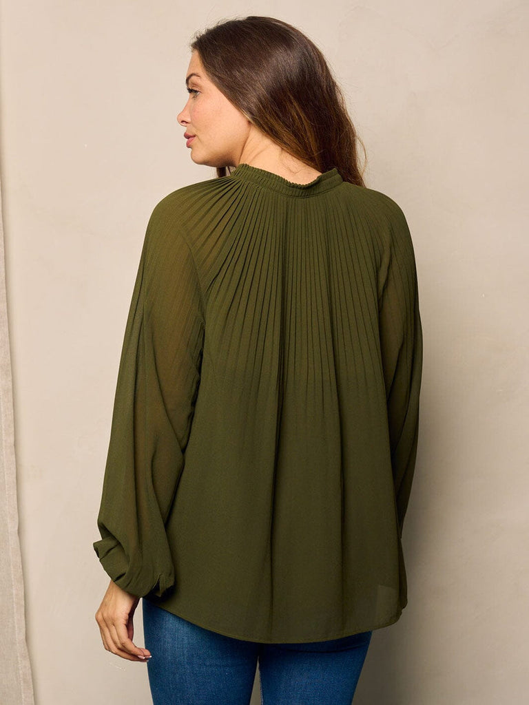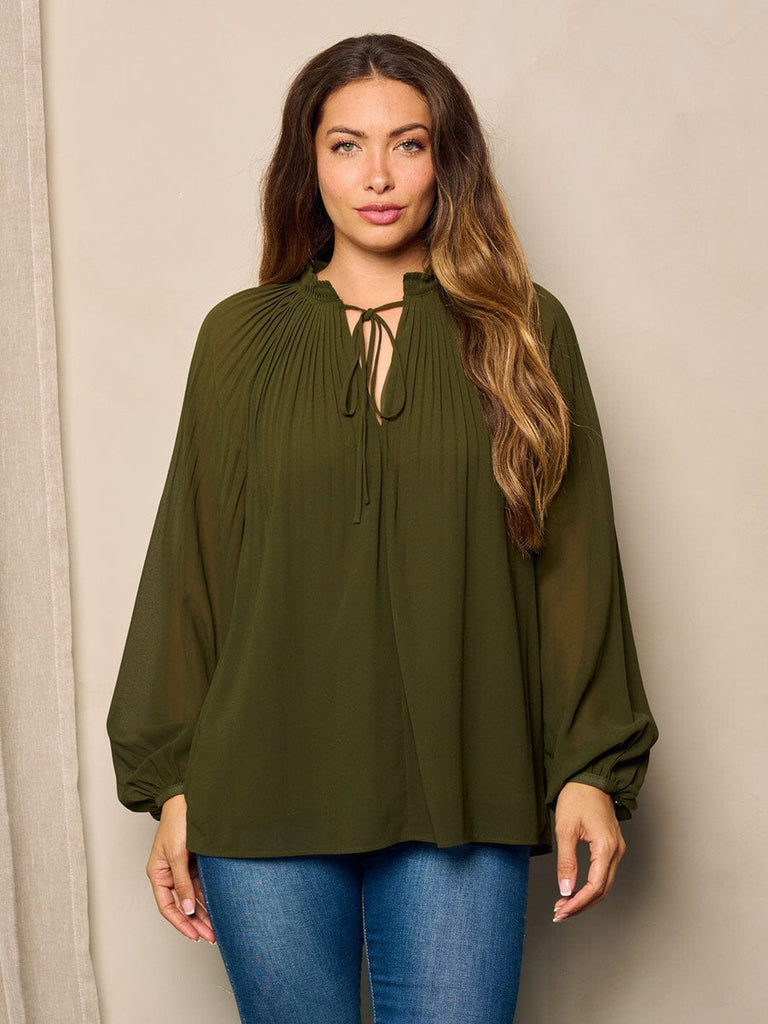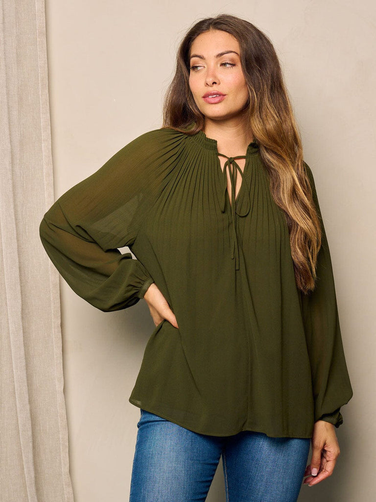 WOMEN'S LONG BALLON SLEEVE V-NECK TUNIC BLOUSE TOP