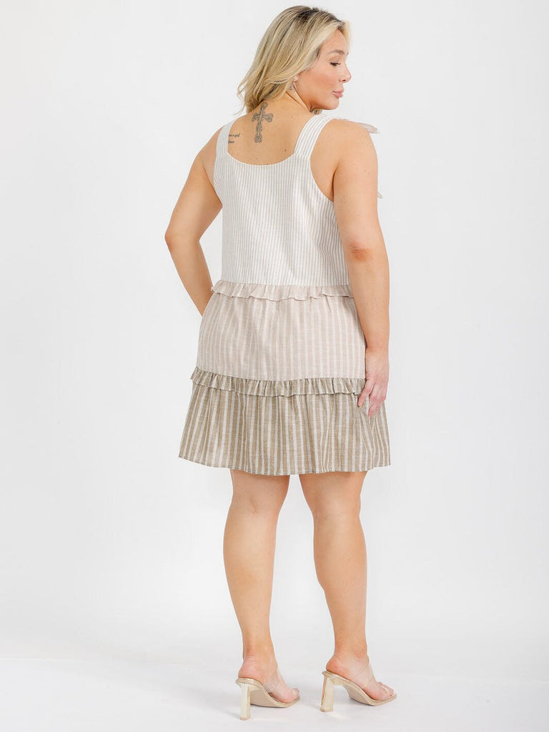 PLUS SIZE SLEEVELESS TIERED COLORBLOCK STRIPES TUNIC MINI DRESS