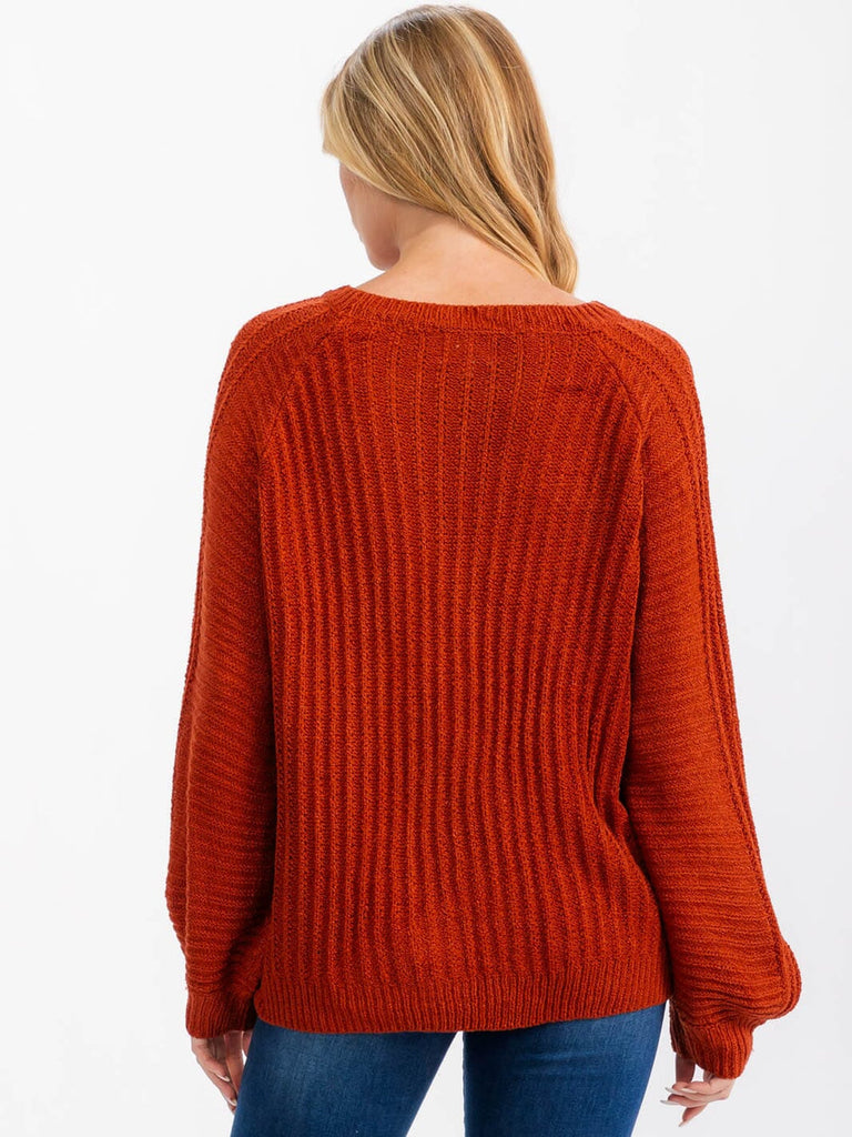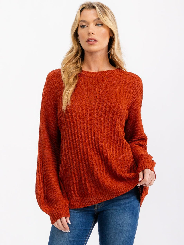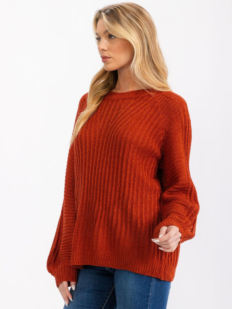 WOMEN'S LONG BALLOON SLEEVE PULLOVER KNIT SWEATER