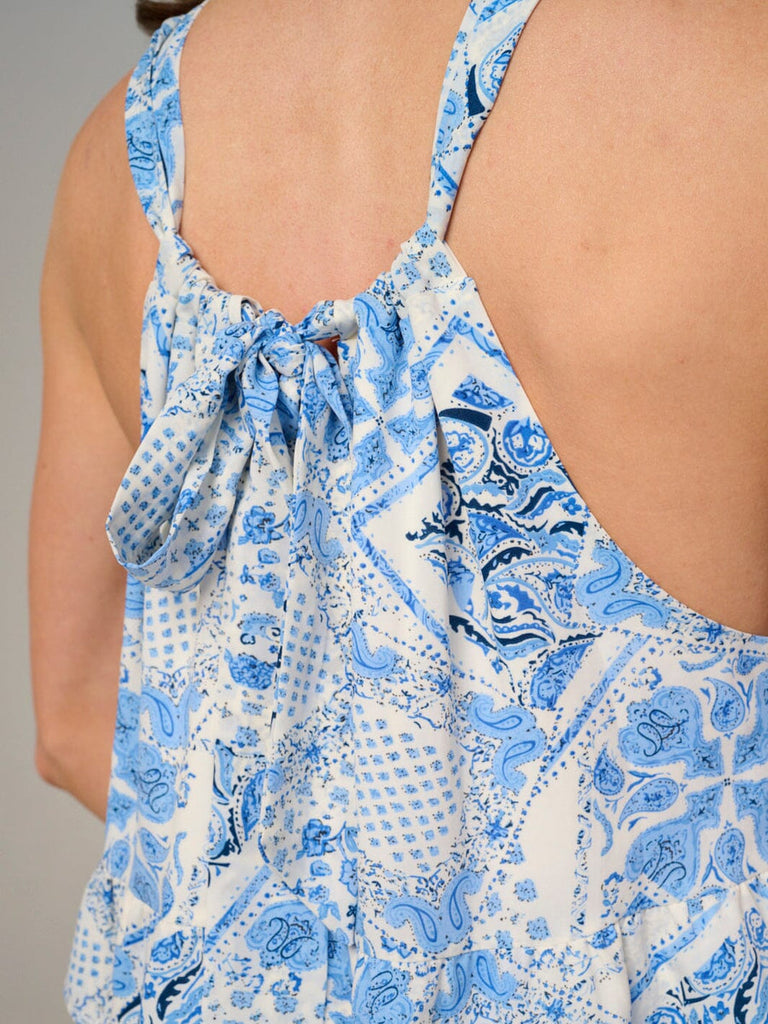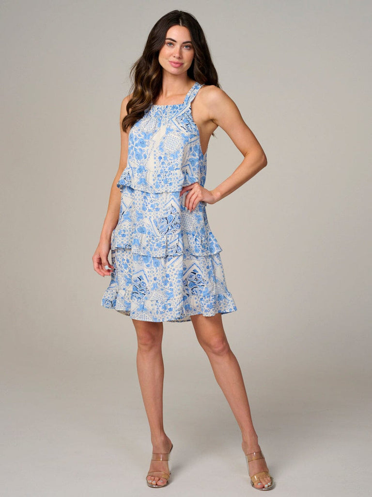 WOMEN'S SLEEVELESS SMOCK RUFFLE TIERED MULTI PRINT MINI DRESS