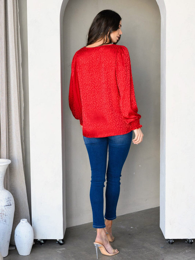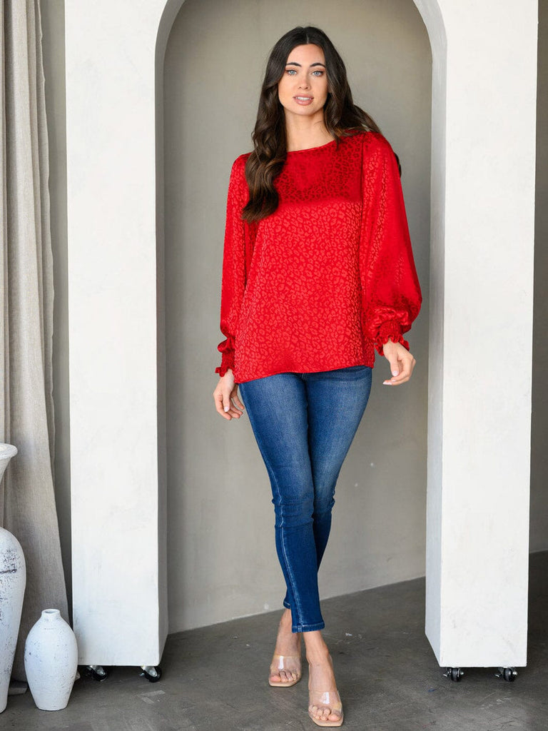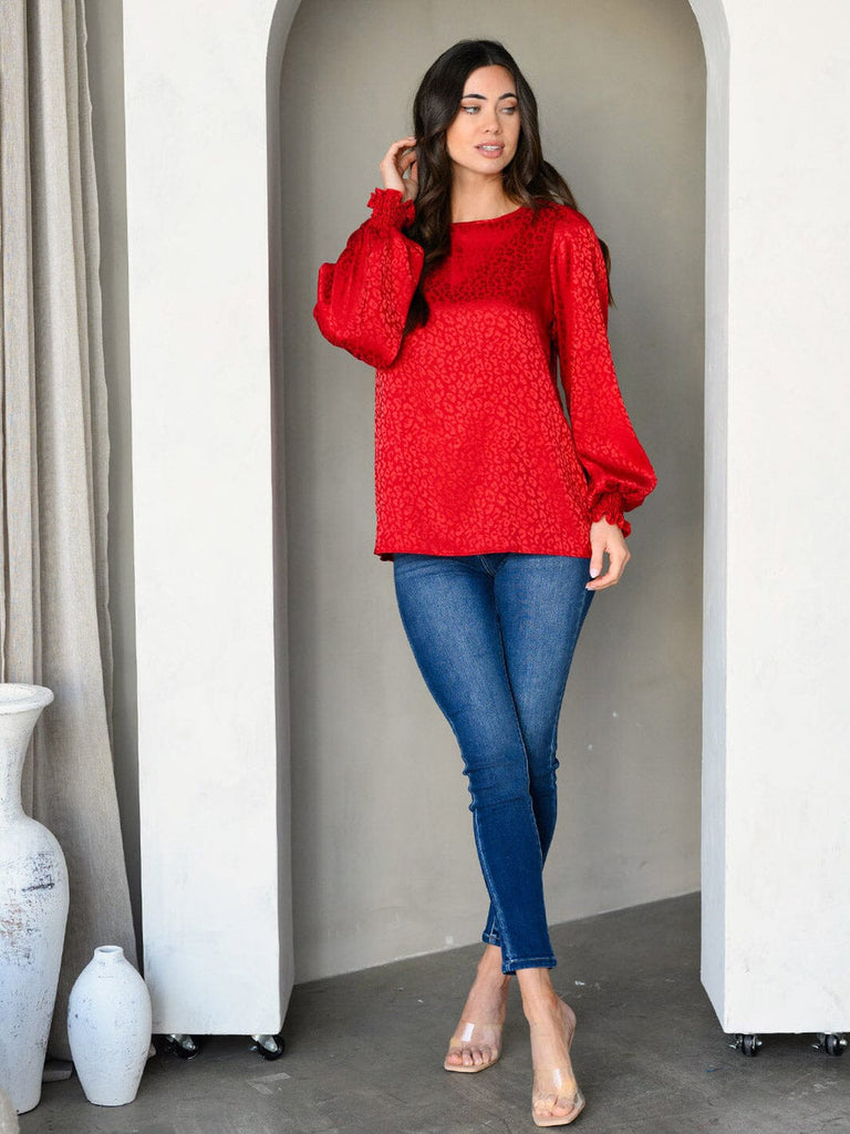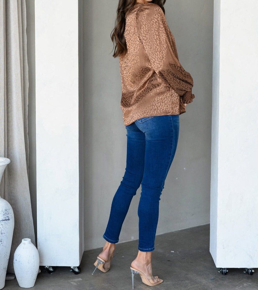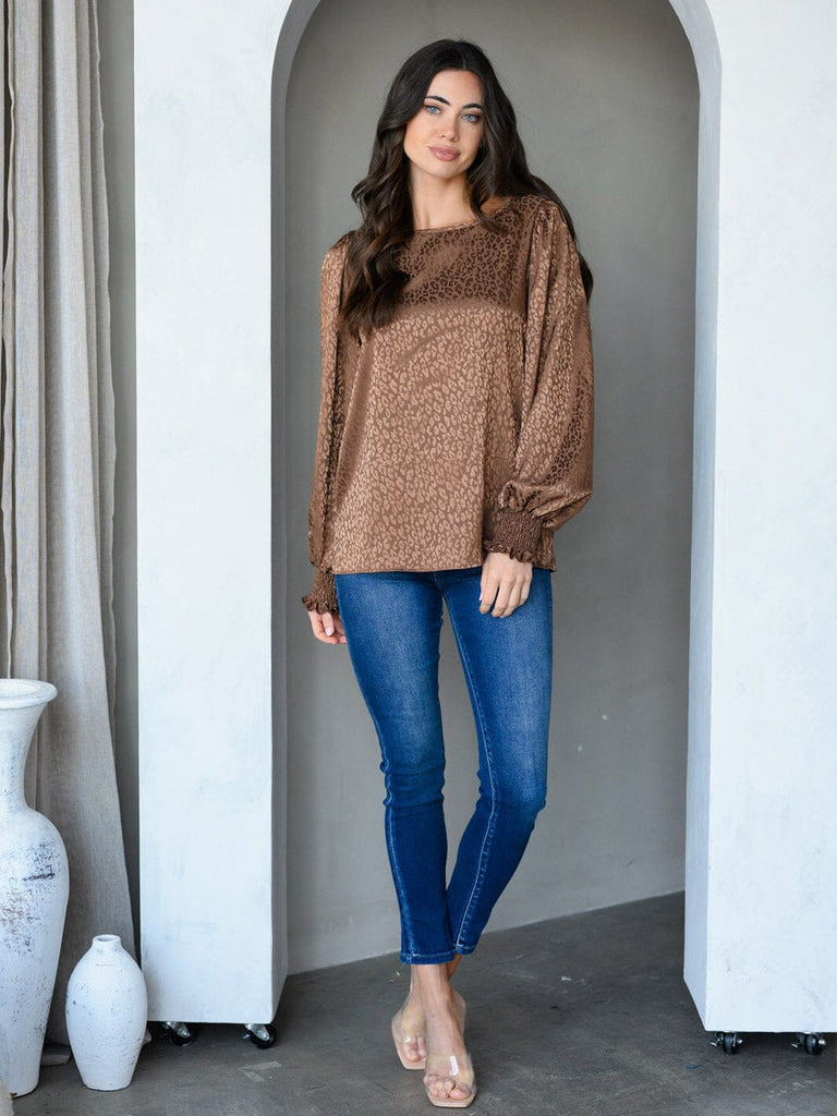 WOMEN'S LONG SLEEVE ANIMAL PRINT TUNIC TOP mocha and burgundy